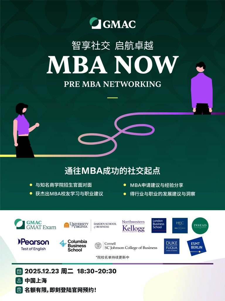 GMAC诚挚邀请您参与 GMAC Pre MBA Community 于上海举办的Pre-MBA Networking 活动!这不仅是一场精英社交聚会,更是潜在 MBA 申请人 & 准 MBAer: